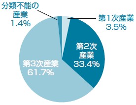 ※第1次産業は産業分類の[A.農業、林業、B.漁業]とし、第2次産業は[C.鉱業、採石業、砂利採取業、D.建設業、E.製造業]とし、第3次産業はそれ以外とする