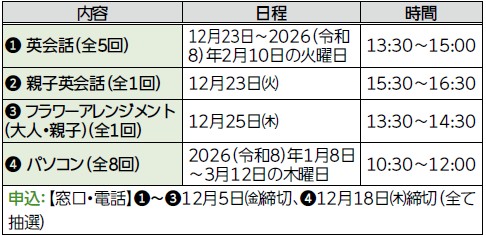 申込:[窓口・電話・ホームページ]11月30日(日)締切(抽選)