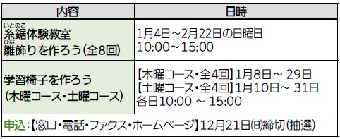 申込:[往復はがき・ホームページ]1月7日(水)必着(抽選)