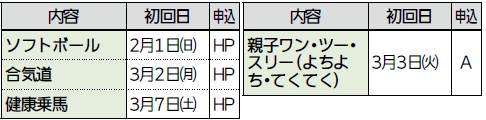 ◆スポーツ広場の一般開放(2月)【直】
